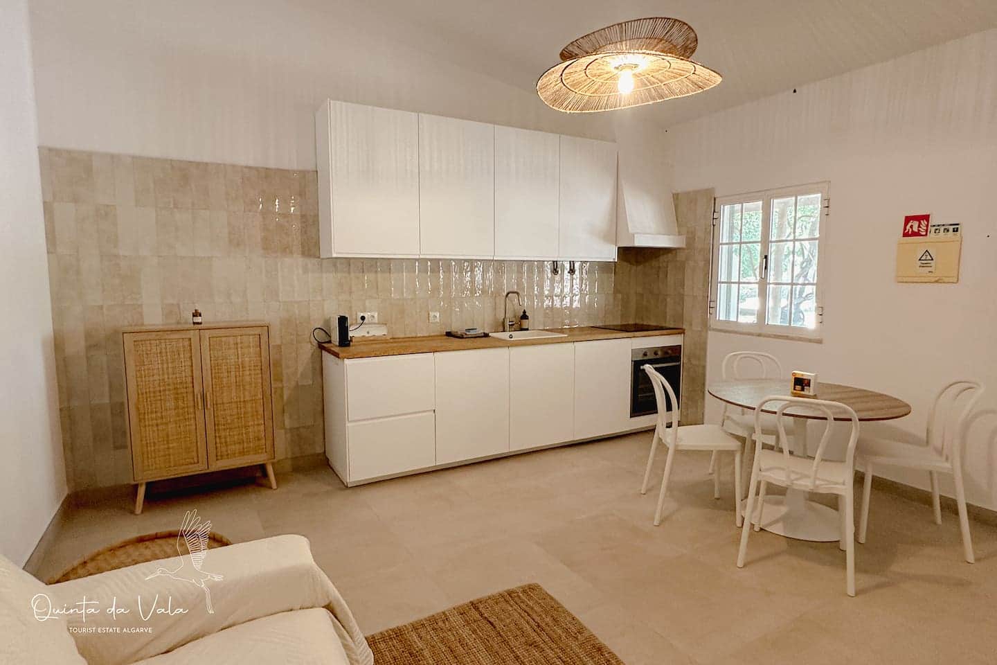 Veranda Suite 4 is a fully renovated holiday home located in the small-scale holiday park Quinta da Vala. The apartment offers all modern comforts: a fully equipped kitchen, a contemporary bathroom with a spacious walk-in shower, and a comfortable double bed (160x200). In the living room, the sofa can easily be converted into an additional double bed (140x200). The entire property is equipped with air conditioning and provides ample storage space.